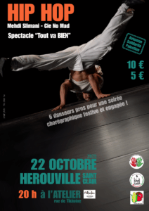 La troupe NO made sera accueillie le 22 octobre à l’Atelier à Hérouville. 6 danseurs de hip hop présenteront un spectacle de 50 min. (entrée 5 /10 € ) « Tout va bien. »